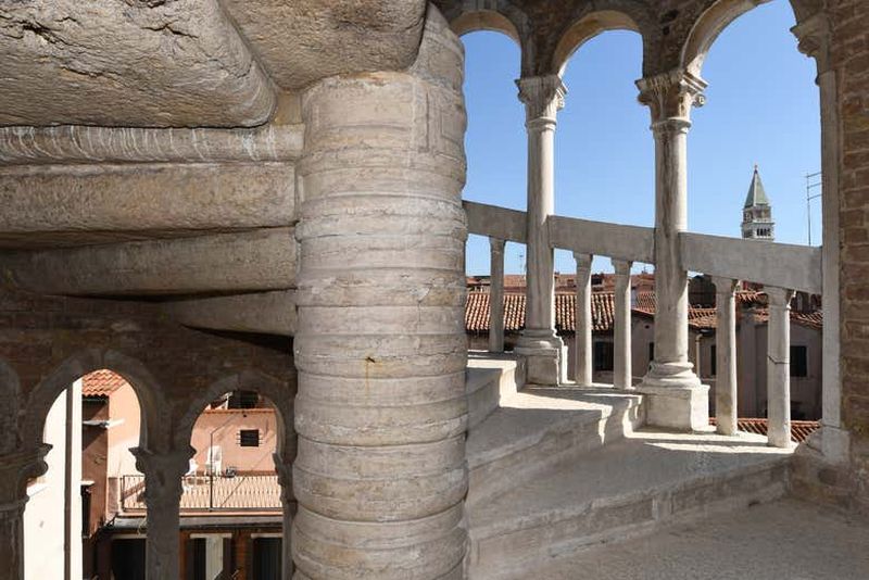 L’escalier baptisé “bovolo” (escargot en dialecte vénitien) fut érigé à la fin du XVe siècle pour la noble famille Contarini. Enrichi de colonnes de style Renaissance et construit en briques, il constitue un chef-d’œuvre d’architecture et un défi technique pour l’époque. Aujourd’hui, grimper ses marches vous plonge dans l’histoire de Venise tout en vous offrant, à chaque palier, des points de vue uniques sur la cour intérieure et la cité.