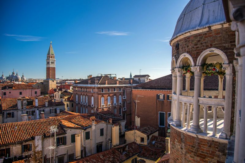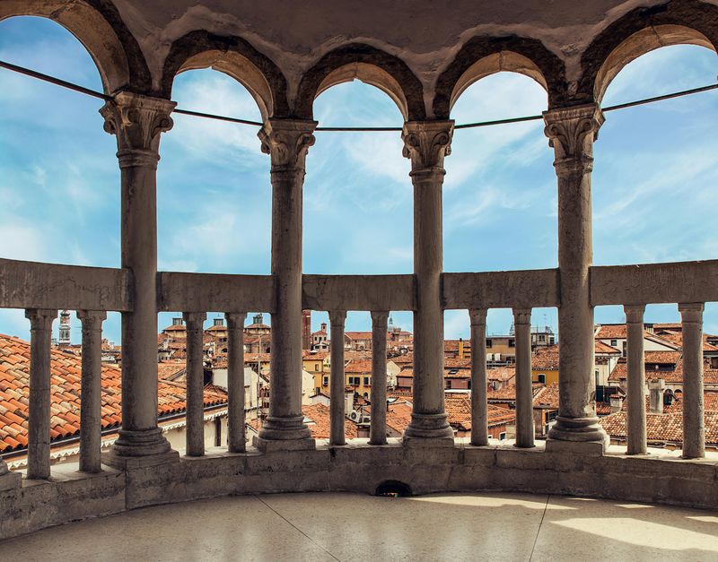 Le belvédère du Palais Contarini del Bovolo, perché au sommet de l’emblématique escalier, offre une vue imprenable sur les toits et clochers de Venise. Conçu pour souligner la prospérité familiale, ce poste d’observation témoigne pleinement de l’ingéniosité architecturale vénitienne. Au lever ou au coucher du soleil, ce panorama unique révèle toute la beauté de la Sérénissime et vous permet à coup sûr d’apprécier son riche patrimoine sous un angle différent.