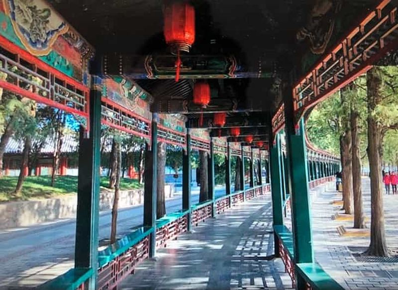 Le long corridor est considéré comme le plus long couloir peint au monde. En effet, il s’étend sur environ 728 mètres. Il est orné de couleurs vives et de scènes légendaires. Construit pour permettre à l’empereur de se promener même par mauvais temps, il offre aujourd’hui une promenade spectaculaire.