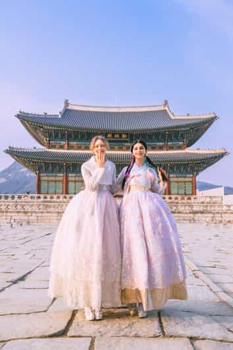 Faites l'expérience de la ville de Séoul en vous promenant dans les rues en Hanbok. Vêtus de couleurs vives et de motifs...