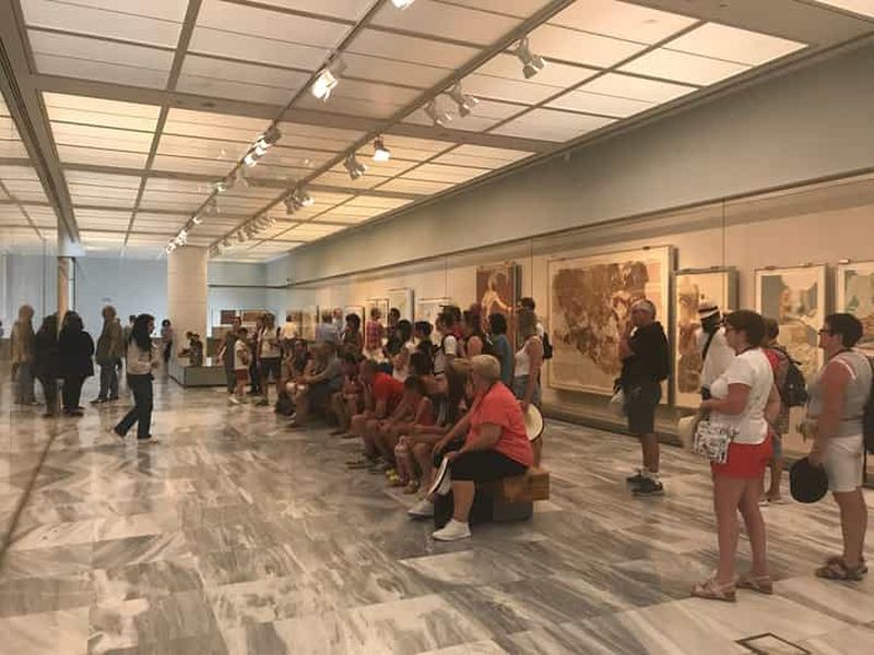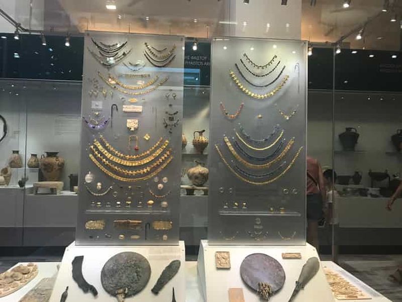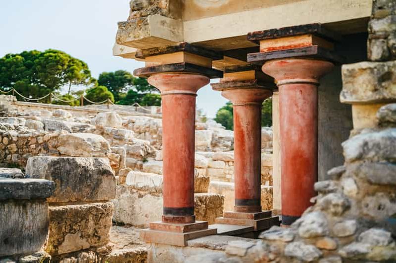 Explorez le palais de Knossos avec une entrée prioritaire et une visite guidée narrative incluses. Profitez d'un confort optimal grâce à notre prise en charge aller-retour en option depuis le centre-ville d'Héraklion. Pour une expérience culturelle complète, choisissez notre extra : la visite du musée de l'Arche d'Héraklion à 13 h 30, par personne.
