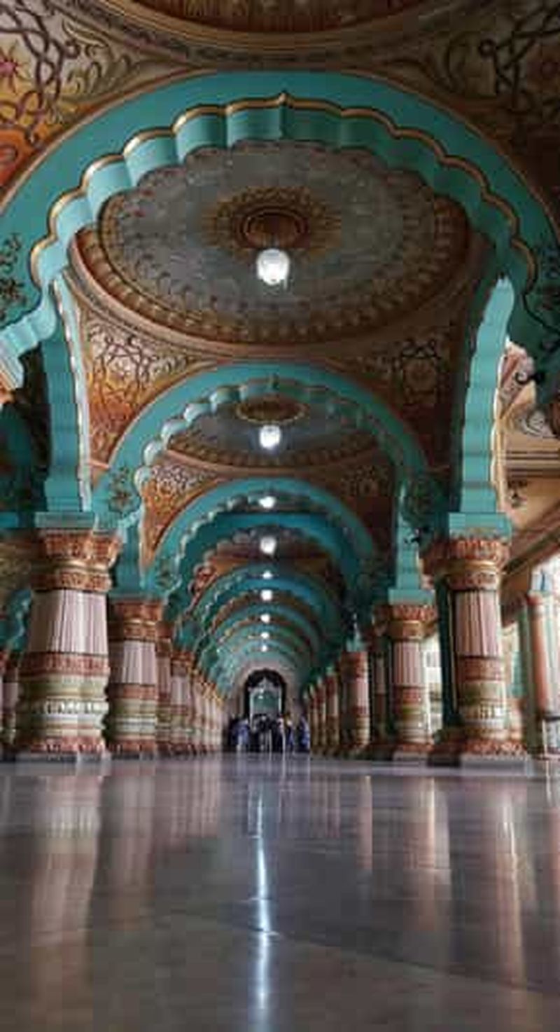 Ce vaste hall, destiné aux rassemblements publics, impressionne par ses dimensions et sa conception ouverte, sans le moindre mur du côté de la place d’armes. Achevé en 1912 sous Krishnaraja Wodeyar IV, l’espace se distingue par ses rangées de colonnes massives aux teintes vives et son plafond richement orné. Depuis cette terrasse monumentale, la famille royale assistait aux défilés et s’adressait au peuple, profitant d’une vue imprenable sur les jardins et la ville.