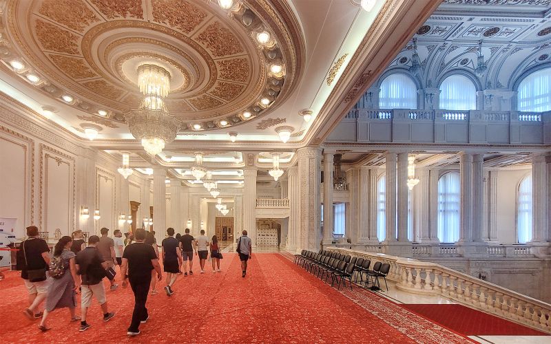 Le Palais du Parlement abrite de nombreuses salles de réception somptueusement décorées, où chaque détail reflète l’ambition du projet. Vous découvrirez des lustres en cristal pesant parfois plusieurs tonnes, commandés spécialement pour brillamment rehausser l’éclat de ces pièces. Réalisés avec du cristal de qualité, ils témoignent du savoir-faire et du faste recherchés dans les années 1980. Chaque salle offre une atmosphère grandiose, pour accueillir cérémonies et événements officiels.