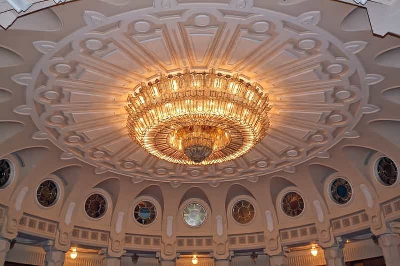 Plus de 3 500 tonnes de cristal décorent lustres et ornements, conférant une atmosphère fastueuse aux salons. Certains lustres, dépassant trois tonnes, témoignent de l’obsession pour l’ostentation. Vous admirerez ces prouesses d’orfèvrerie, allant des imposantes suspensions aux minutieux éléments décoratifs, qui matérialisent le luxe voulu par la dictature en place.