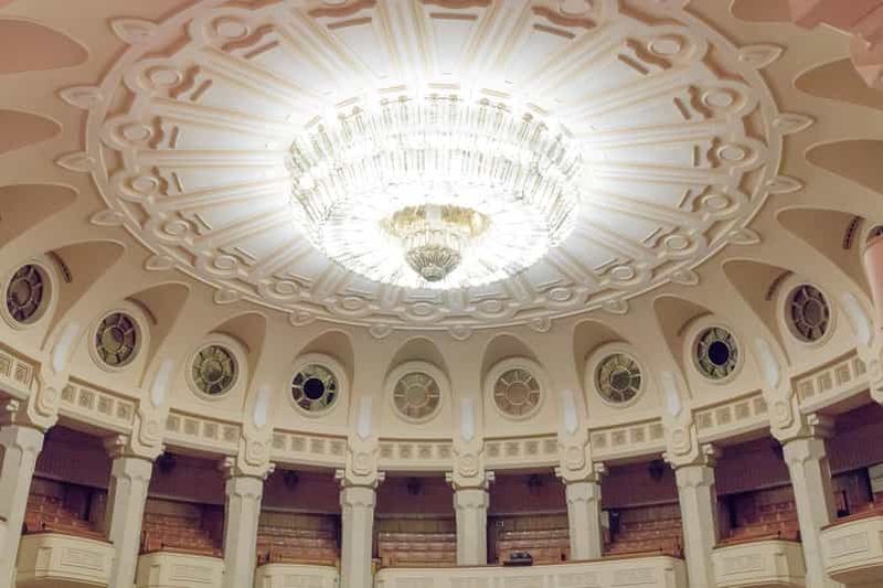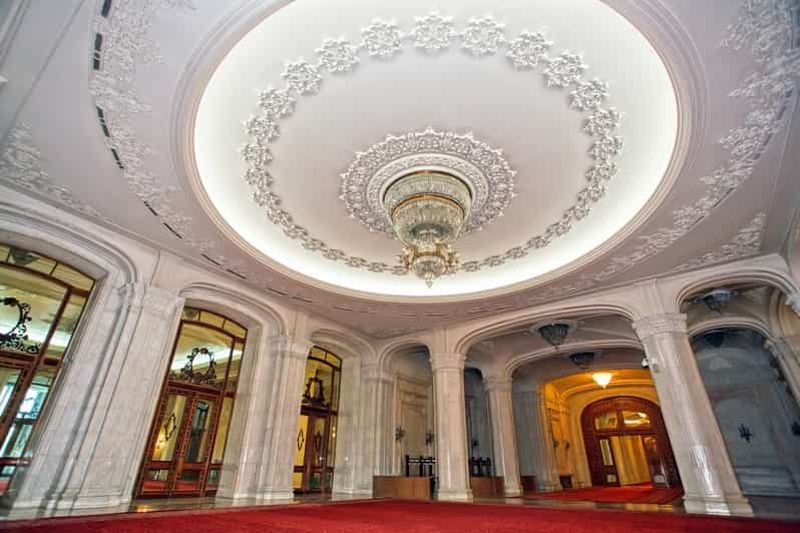 Le Palais du Parlement abrite de nombreuses salles de réception somptueusement décorées, où chaque détail reflète l’ambition du projet. Vous découvrirez des lustres en cristal pesant parfois plusieurs tonnes, commandés spécialement pour brillamment rehausser l’éclat de ces pièces. Réalisés avec du cristal de qualité, ils témoignent du savoir-faire et du faste recherchés dans les années 1980. Chaque salle offre une atmosphère grandiose, pour accueillir cérémonies et événements officiels.