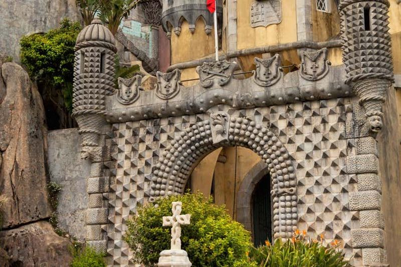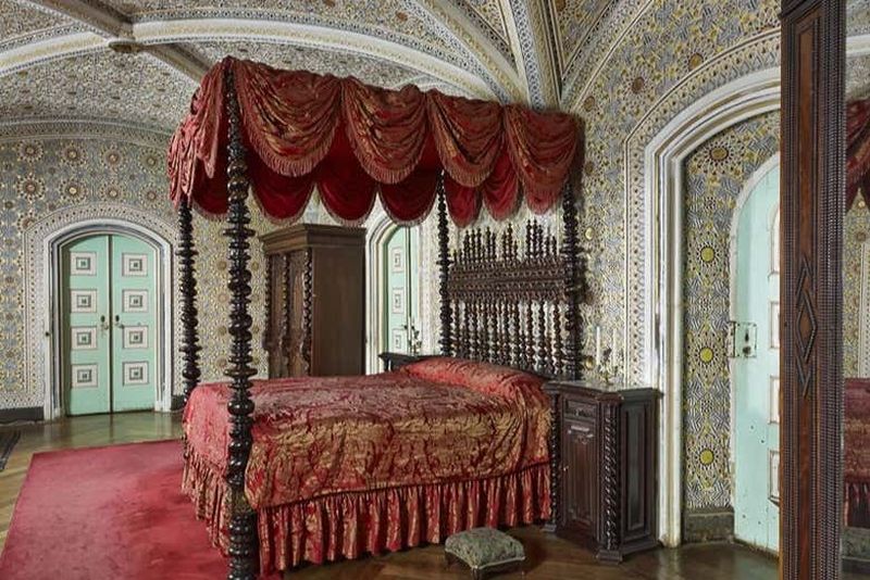 Érigé au XIXe siècle sous l’impulsion du roi Ferdinand II, le palais émerveille par ses façades éclatantes et ses détails variés. Les salles royales, richement décorées, témoignent du style romantique de l’époque. À l’intérieur, la chapelle présente des éléments gothiques distinctifs, tandis que la Porte du Triton affiche un personnage mythique sculpté avec finesse. Chaque recoin du palais révèle un mélange unique d’influences maures, manuéline et d’un baroque très inspiré.