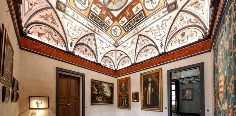 Redécouvertes au début du XXe siècle, les fresques Renaissance de la Cour d’honneur témoignent de l’influence artistique italienne dans la décoration du palais. Conservées sous des couches de plâtre pendant des siècles, elles révèlent aujourd’hui une richesse de couleurs et de motifs, purement artistique, rappelant l’âge d’or de la Renaissance.