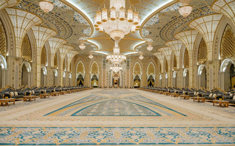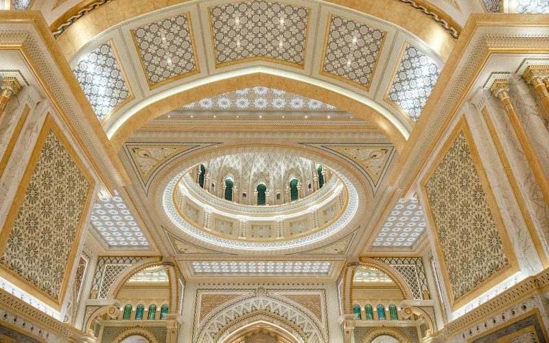 La magnificence de Qasr Al Watan se reflète dans plus de 5 100 motifs décoratifs, inspirés de l’architecture islamique. Chaque motif illustre la richesse du patrimoine arabe, offrant un aperçu fascinant de son histoire artistique. Ouvrez l’œil : ces détails subliment chaque recoin et renforcent le caractère prestigieux du lieu.