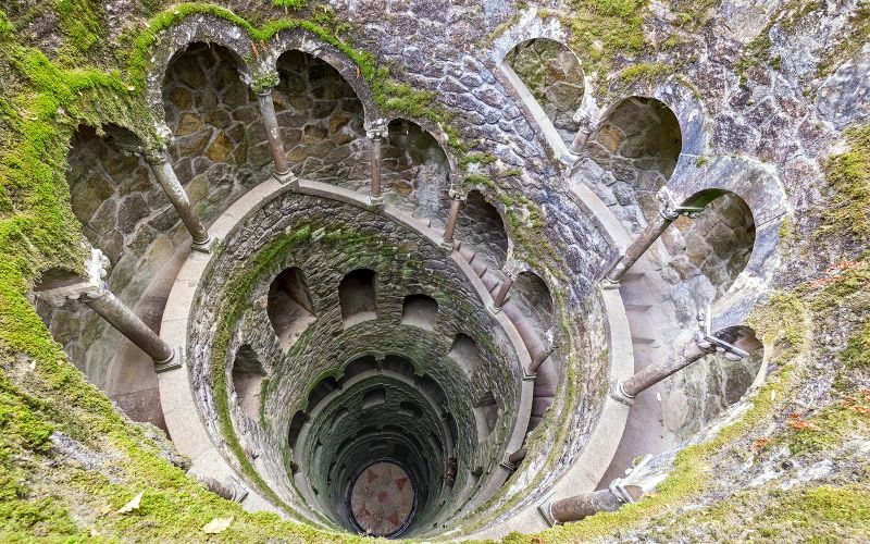 Le palais est célèbre pour ses jardins labyrinthiques, parsemés de grottes secrètes, de passages cachés et de fontaines mystiques. Un des éléments les plus intrigants est le puits initiatique, un escalier en spirale menant les visiteurs à un voyage symbolique vers la découverte intérieure. Cette architecture ésotérique reflète les intérêts profonds de Monteiro pour l’alchimie, la franc-maçonnerie et les Templiers.