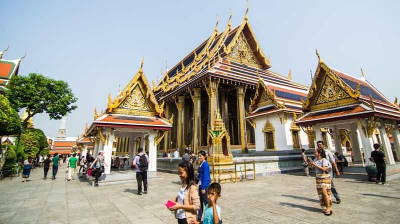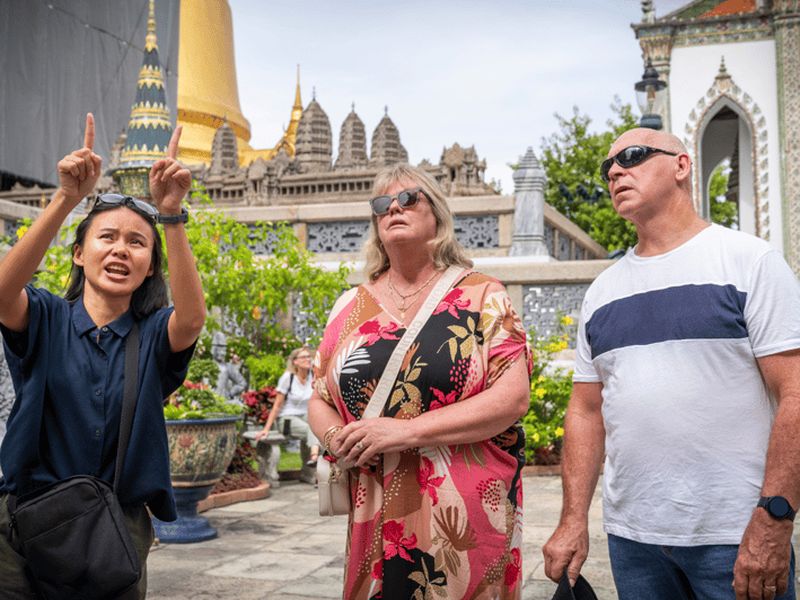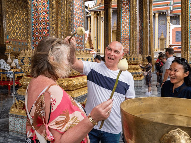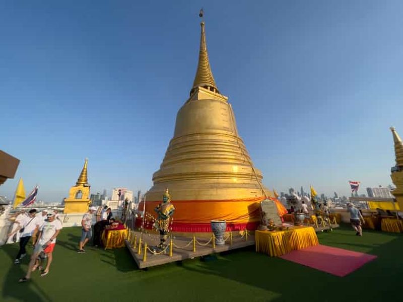 Au cours de cette excursion, vous visiterez le Mont d’Or (Wat Saket), le palais royal, le temple du Bouddha d’Émeraude et Wat Pho. Tous les frais d’entrée non inclus ; les frais de billetterie s’élèveront à 900 THB par personne, à régler sur place.