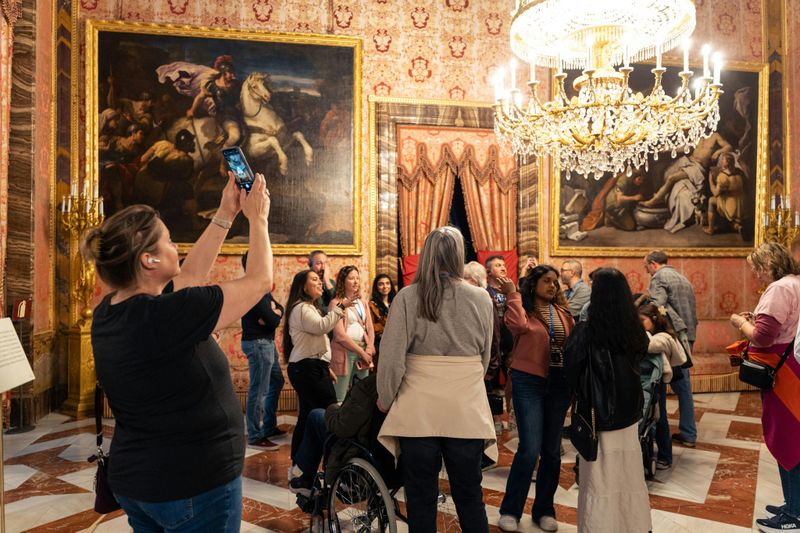 Le palais est un véritable musée, abritant quelques-unes des plus grandes collections d’art d’Europe. Il possède plus de 3 000 salles, dont la salle du trône ornée de fresques de Corrado Giaquinto, et une salle de banquet somptueuse. Le Palais est également connu pour sa fabuleuse armurerie royale et ses horloges anciennes, témoignant de l’élégance raffinée royale à travers les âges.