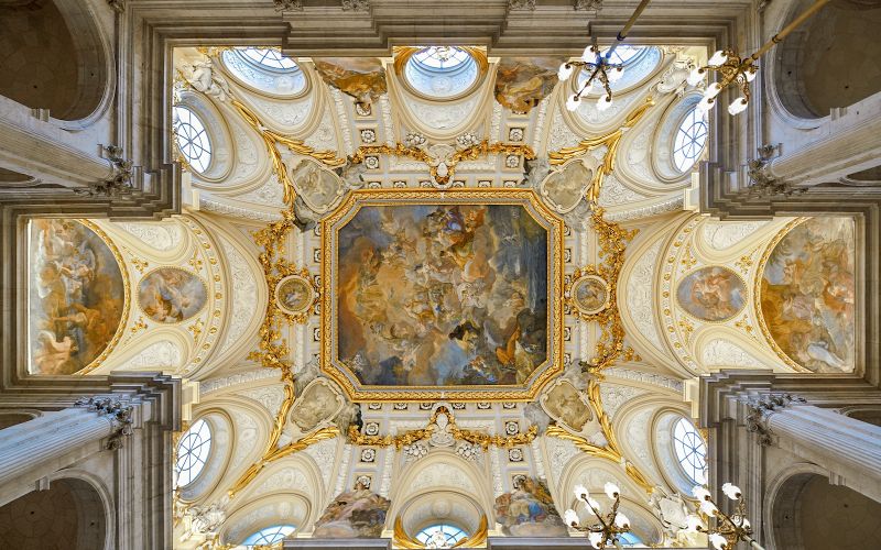 Le palais est un véritable musée, abritant quelques-unes des plus grandes collections d’art d’Europe. Il possède plus de 3 000 salles, dont la salle du trône ornée de fresques de Corrado Giaquinto, et une salle de banquet somptueuse. Le Palais est également connu pour sa fabuleuse armurerie royale et ses horloges anciennes, témoignant de l’élégance raffinée royale à travers les âges.
