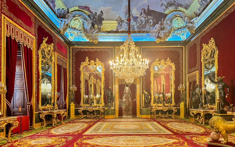 Le palais est un véritable musée, abritant quelques-unes des plus grandes collections d’art d’Europe. Il possède plus de 3 000 salles, dont la salle du trône ornée de fresques de Corrado Giaquinto, et une salle de banquet somptueuse. Le Palais est également connu pour sa fabuleuse armurerie royale et ses horloges anciennes, témoignant de l’élégance raffinée royale à travers les âges.
