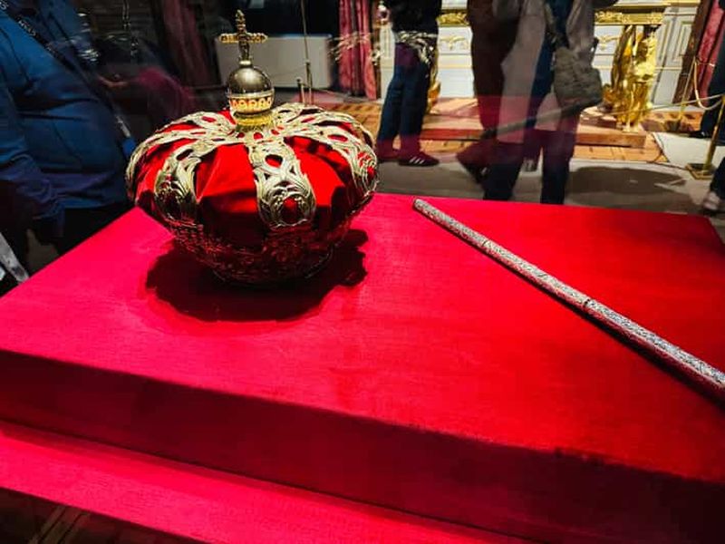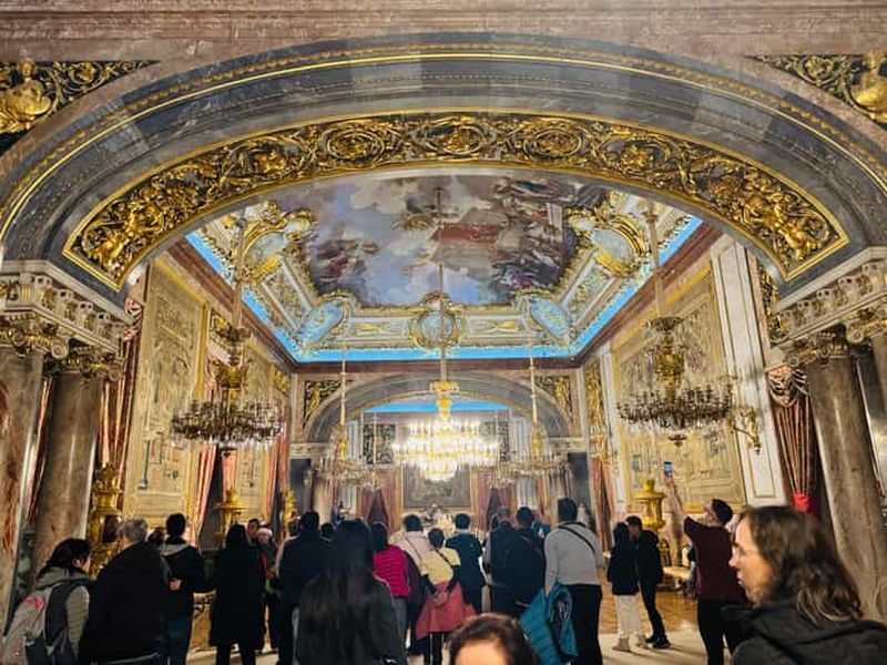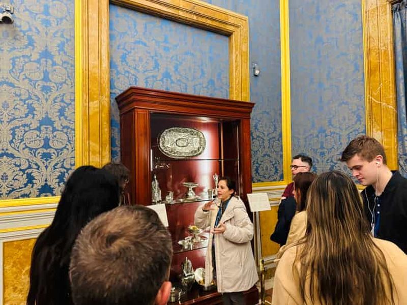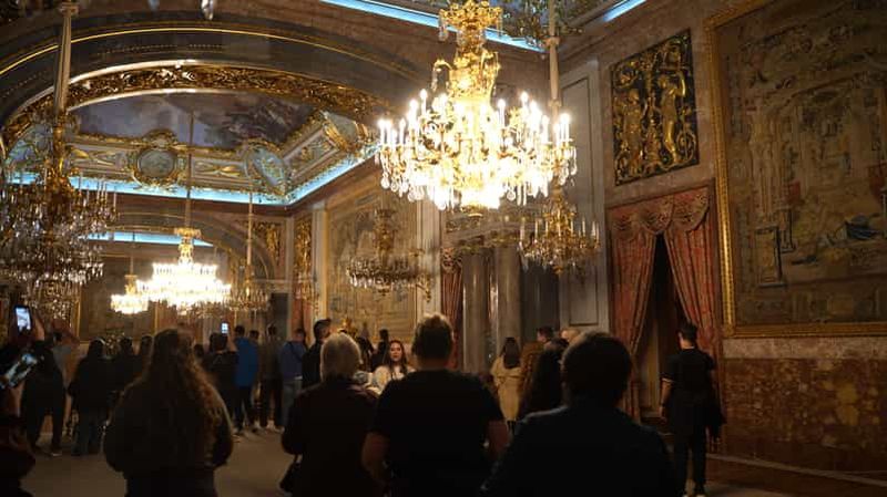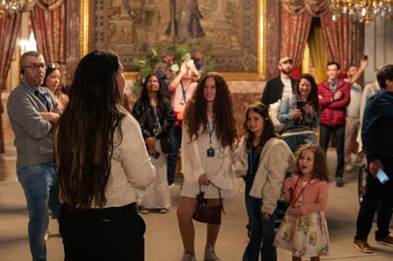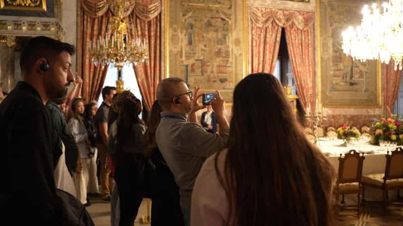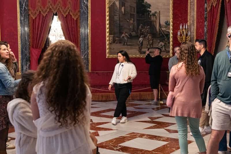 Profitez d'un accès coupe-file garanti au palais royal de Madrid lors d'une visite guidée avec un guide agréé hispanophone, comprenant l'entrée au palais et des casques audio fournis pour que vous puissiez bien entendre chaque détail tout au long de votre visite.