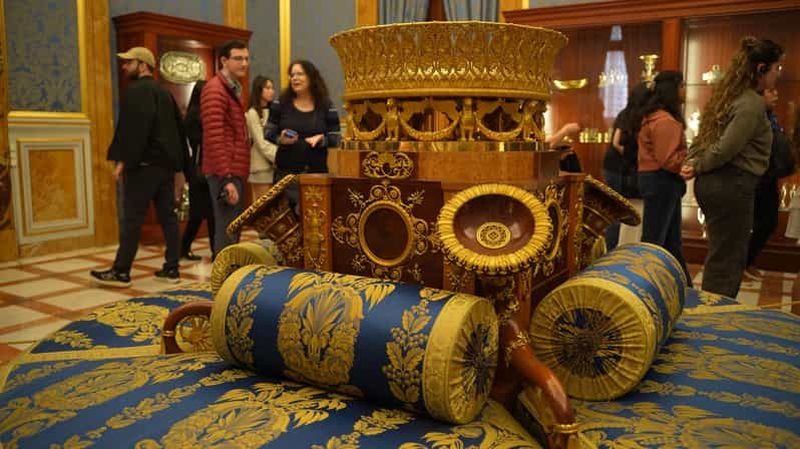 Participez à une visite guidée du Palais royal de Madrid avec entrée sans file d'attente. Explorez les appartements roya...