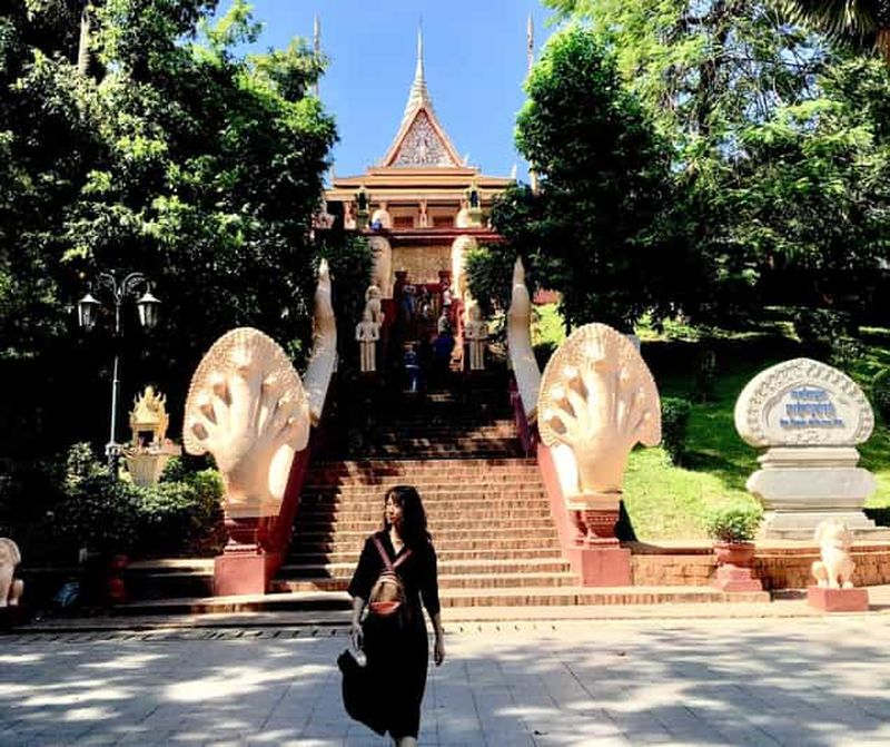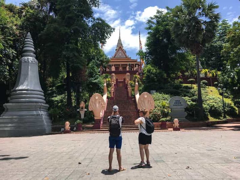 Cinq grands sites de Phnom Penh avec guide anglophone dans des véhicules climatisés. Le guide aidera les voyageurs à comprendre l'histoire du Champ d'extermination, de Toul Sleng, du marché russe de Toul "marché Tampoung", du charmant Palais royal et du Wat Phnom de Phnom Penh.