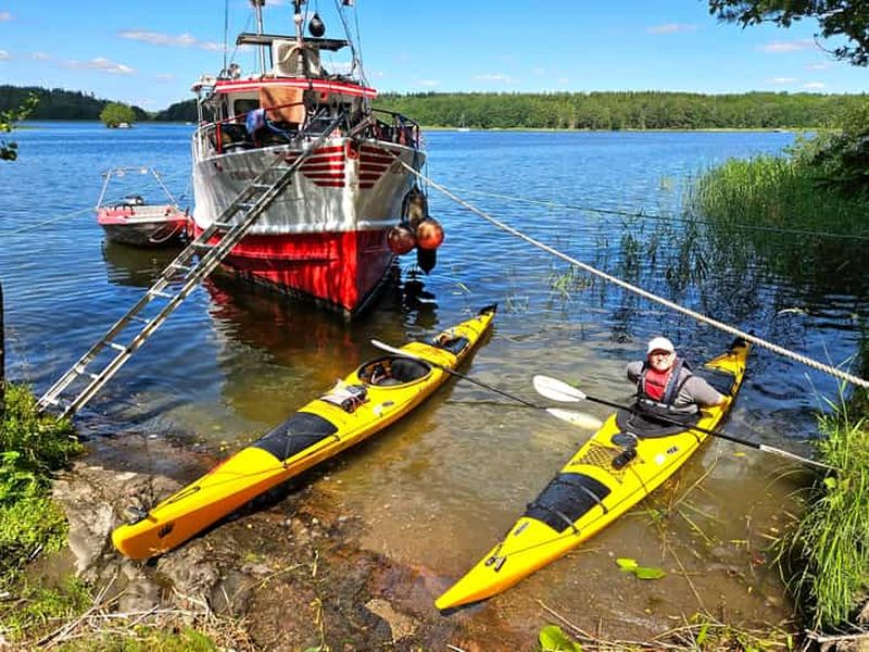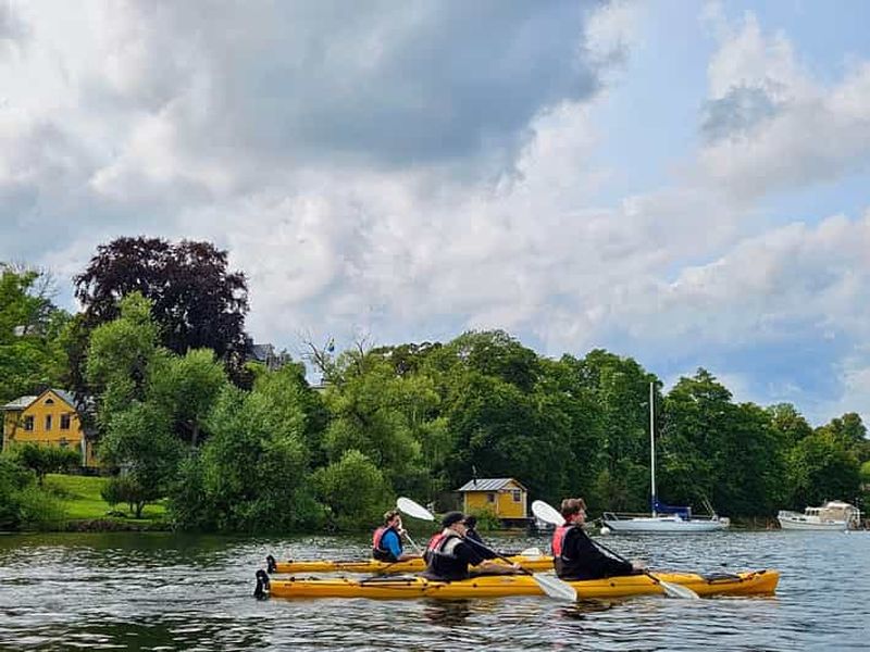 Faites du kayak autour de l'emblématique palais royal de Drottningholm et explorez l'archipel verdoyant du lac Mälaren, ...