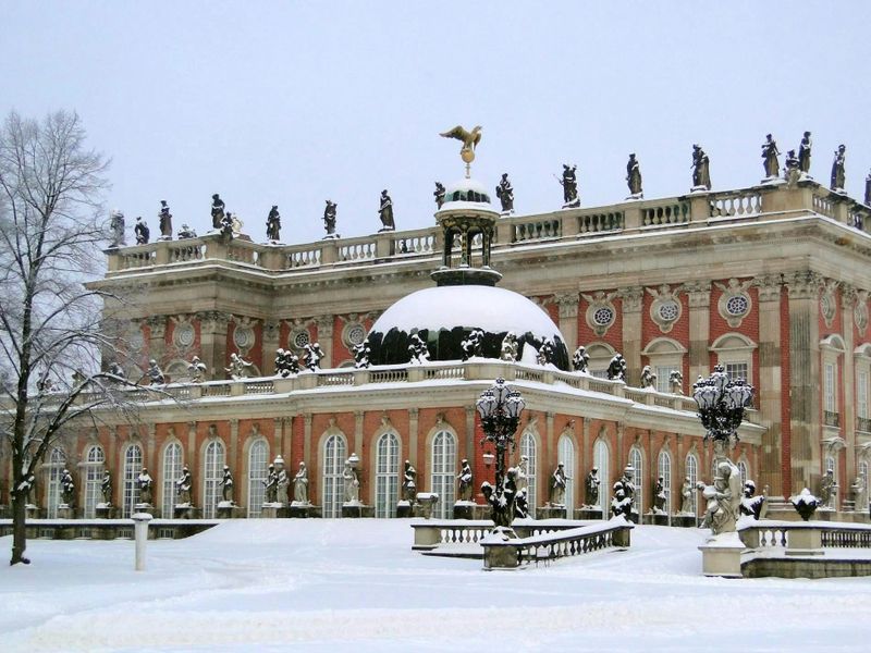 Le Nouveau Palais, érigé entre 1763 et 1769 sur ordre de Frédéric le Grand, incarne la puissance et la prospérité prussiennes après la guerre de Sept Ans. Son architecture baroque tardive se démarque par sa façade imposante et ses innombrables sculptures décoratives. À l’intérieur, vous découvrirez des salles cérémonielles somptueuses et des appartements royaux préservés. Cette visite vous révèlera l’ambition du monarque d’affirmer sa grandeur, aussi bien sur le plan politique qu’artistique.
