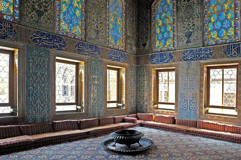 Le Harem était la résidence privée du sultan et de sa famille. Composé de multiples salles et appartements somptueux, il constitue un véritable labyrinthe parfois orné de faïences d’Iznik et de marbre. Les différentes sections témoignent de la hiérarchie rigoureuse, où vivaient la mère du sultan, les concubines et les eunuques. Chaque recoin reflète le raffinement artistique ottoman et l’intimité de la vie impériale.