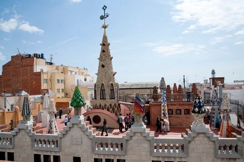 Véritable signature de Gaudí, le toit-terrasse propose un parcours avec ses cheminées colorées. Réalisées entre 1887 et 1890, elles sont recouvertes de mosaïques en trencadis, technique emblématique du modernisme catalan. Ce jeu de formes et de couleurs, s’inspirant de la nature, confère une dynamique sculpturale à la toiture. Le panorama sur la vieille ville de Barcelone complète l’expérience. Vous pouvez découvrir ici la créativité débordante de Gaudí en plein air.