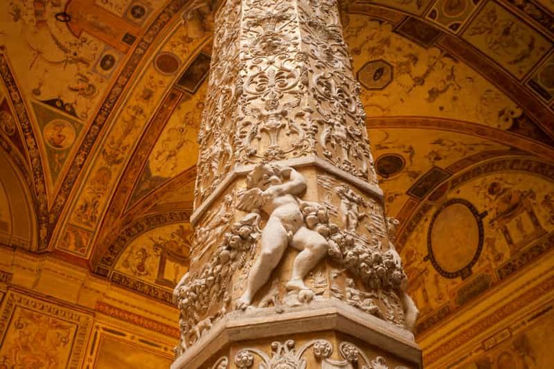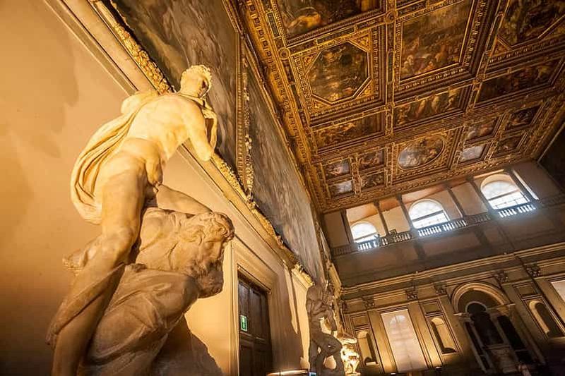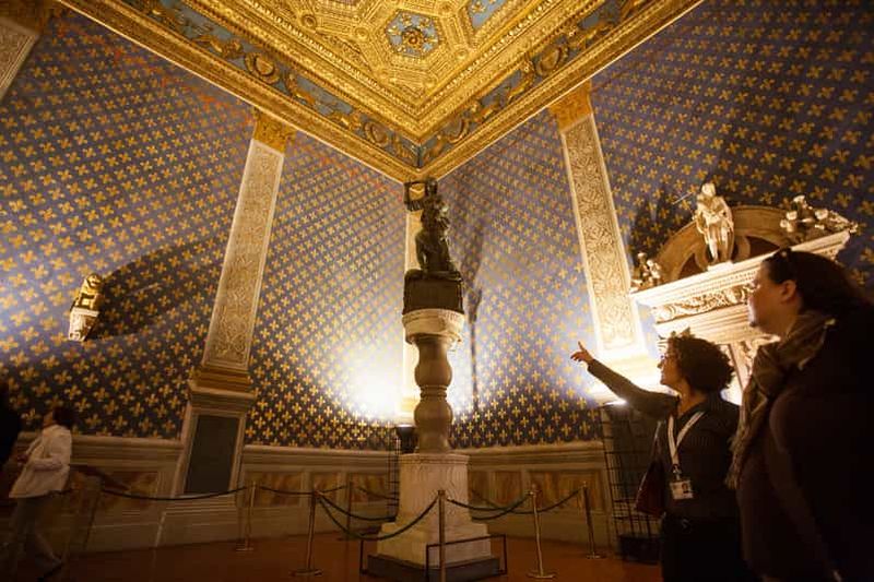 Le Salone dei Cinquecento, érigé en 1494 sous l’impulsion du moine Savonarole, demeure la salle la plus vaste du Palazzo Vecchio. Au XVIe siècle, Giorgio Vasari en agrandit et orna les murs de fresques célébrant la puissance florentine. À proximité, le raffiné Studiolo de Francesco I, également décoré par Vasari, recèle des cabinets secrets et des œuvres d’art ésotériques. Vous serez impressionné par l’atmosphère et la splendeur de ces espaces.