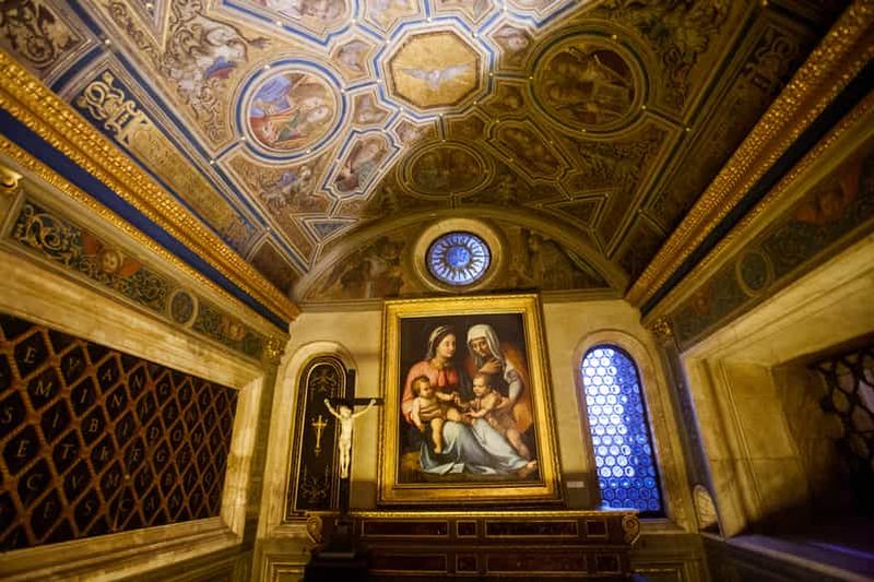 Les Appartements de la famille Médicis occupent un ensemble raffiné de pièces privées, témoignant du style de vie luxueux de cette dynastie influente de Florence. Les plafonds à caissons, les fresques et les meubles d’époque reflètent la recherche d’élégance et de pouvoir qui caractérisait les Médicis. Vous découvrirez la Chambre de Leon X, dotée de détails décoratifs étonnants. Chaque salle révèle un pan de l’histoire de cette famille de mécènes.