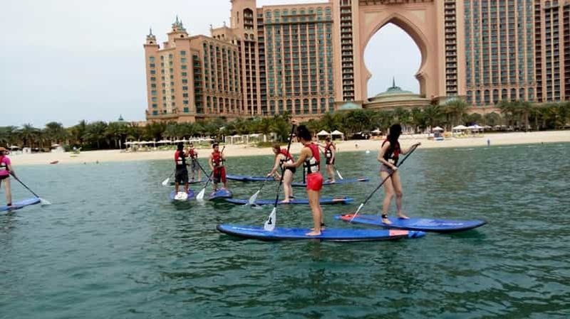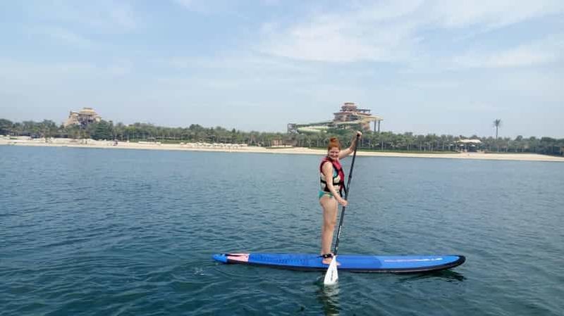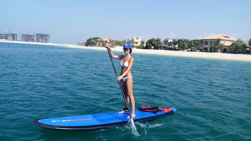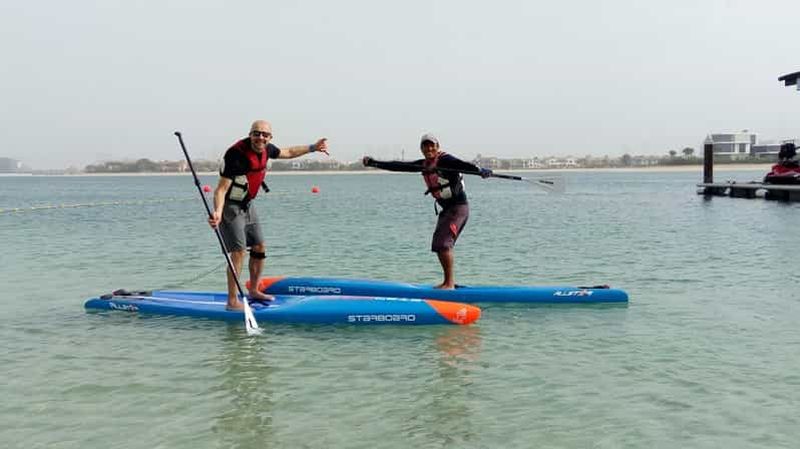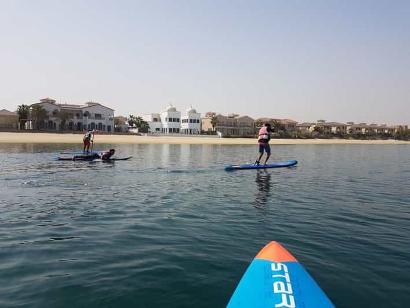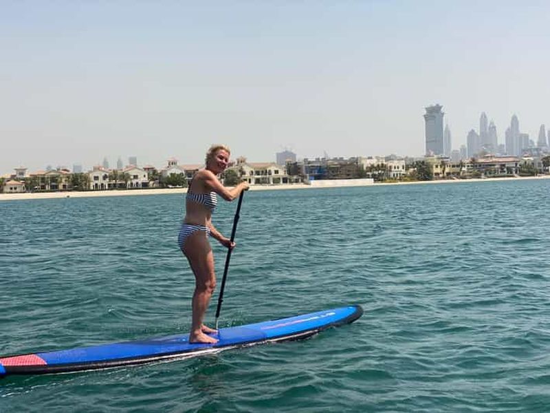 Pagayez sur les eaux calmes et claires de Palm Jumeirah et admirez le paysage qui vous entoure. Levez-vous et pagayez da...
