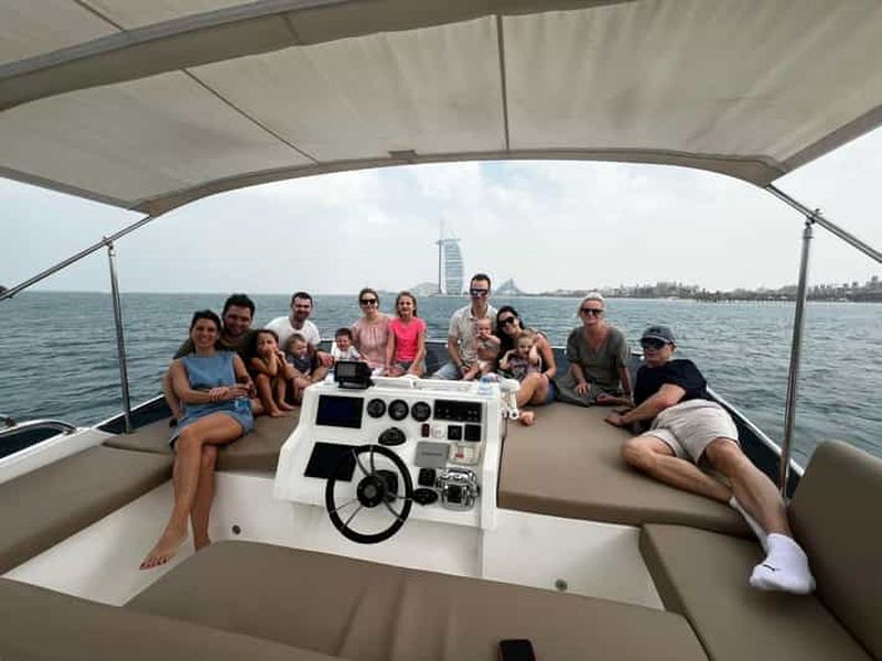 Naviguez le long de la ligne d'horizon scintillante de Dubaï lors d'une croisière nocturne d'une heure. Explorez la marina de Dubaï, JBR et l'île de Bluewaters, capturez des photos incroyables d'Ain Dubaï et profitez de la brise marine sous les lumières de la ville : l'expérience ultime en soirée !