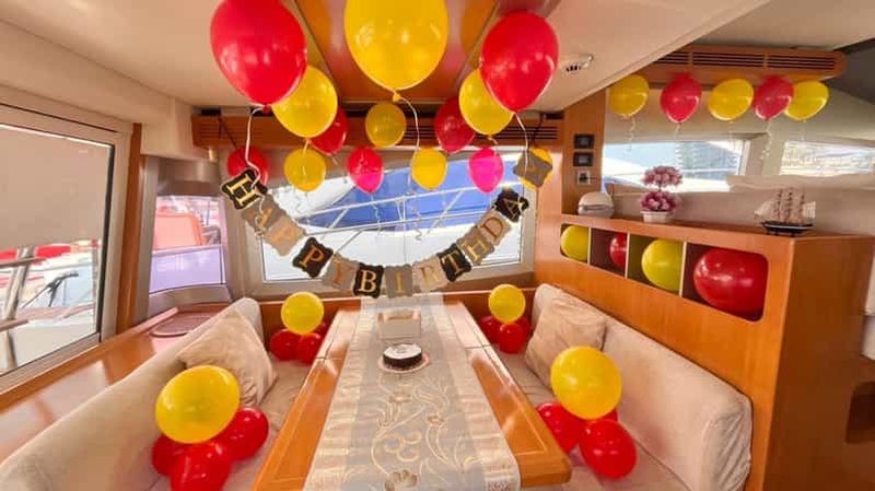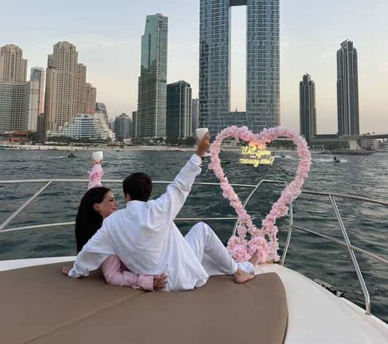 Profitez d'une croisière en yacht de 2 heures au départ de la marina de Dubaï, tout en sirotant des boissons non alcooli...