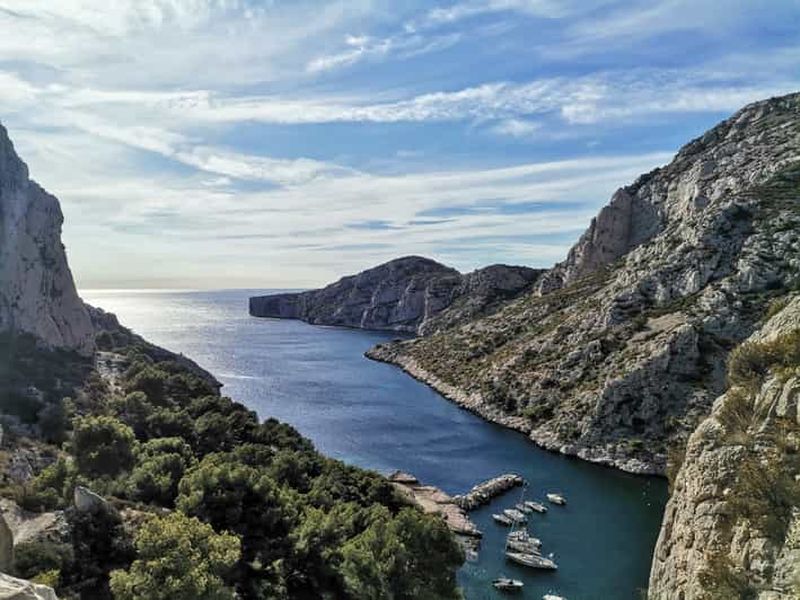 Découvrez les Calanques lors d'une randonnée guidée au départ de Marseille. Baignez-vous dans des criques cachées, profi...