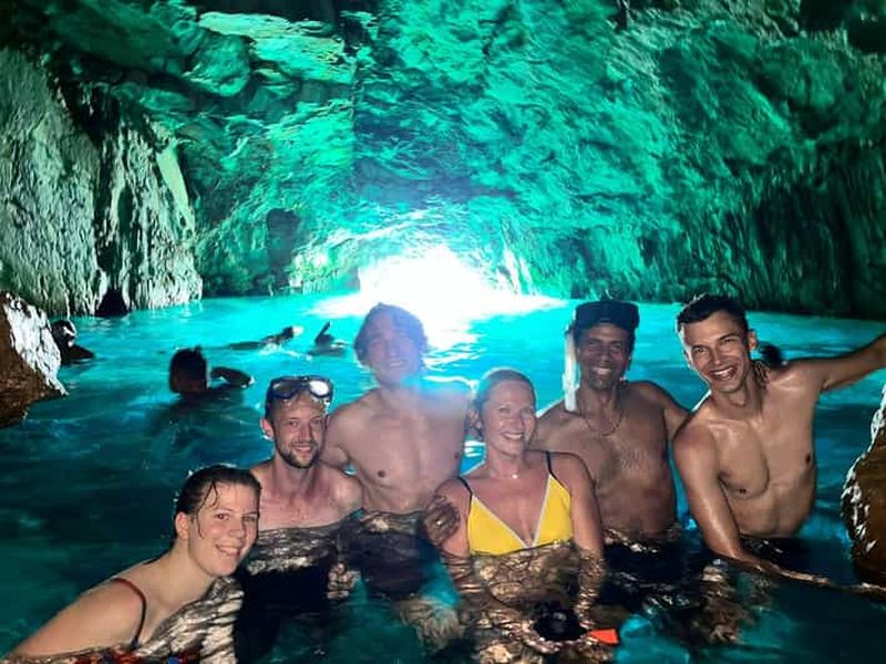 Vous recevrez des indications pour accéder à la Grotte Bleue, qui nécessite une traversée à la nage de 700 mètres aller-retour et dépend des conditions météorologiques et maritimes. Les clients doivent être de bons nageurs ; des consignes de sécurité seront fournies par le guide le jour de l'excursion.