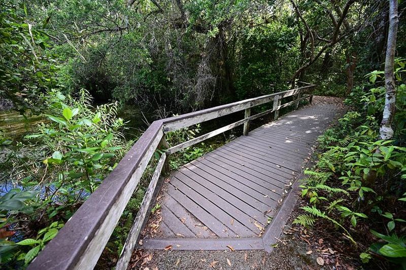 Célèbre pour abriter certains des plus vieux arbres d’acajou des États-Unis, Mahogany Hammock propose une promenade sur caillebotis à travers une forêt dense. Datant des années 1950, ce parcours permet d’observer la transition entre marécages et hammocks, écosystèmes surélevés du parc. L’ombre y est rafraîchissante, et la faune abondante, notamment divers oiseaux nichant dans les frondaisons.