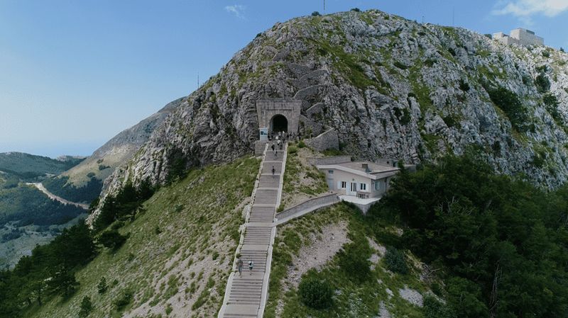 Inauguré en 1974 au sommet du Jezerski Vrh, ce mausolée est le lieu de repos éternel de Petar II Petrović-Njegoš, souverain et poète vénéré du pays. L’accès au monument constitue une expérience en soi : après avoir traversé un tunnel et gravi 461 marches taillées dans la pierre, vous débouchez sur une cour spectaculaire. L’intérieur abrite une statue monumentale en granit sculptée par Ivan Meštrović, veillant sur la crypte. Ce site mêle solennité historique et architecture grandiose, le tout perché au-dessus des nuages.