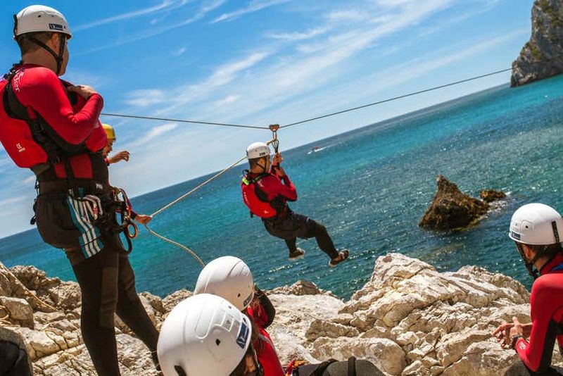 Participez à une expérience palpitante de coasteering dans le parc naturel d'Arrábida, où des moments d'adrénaline vous ...