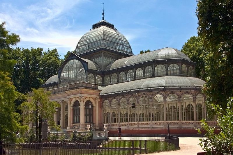 Construit en 1887 pour abriter une exposition sur les Philippines, le Palais de Cristal est un joyau architectural signé Ricardo Velázquez Bosco. Sa structure en verre et en métal, inspirée du Crystal Palace de Londres, laisse passer la lumière à profusion. Intégré au Musée Reina Sofía, il accueille régulièrement des expositions d’art contemporain. Un bassin orne son entrée, créant un contraste harmonieux entre la transparence et l’environnement verdoyant du parc.