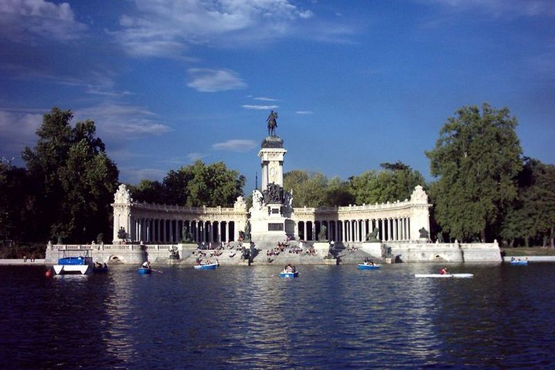 Érigé en 1922 par l’architecte José Grases Riera, le monument à Alphonse XII se dresse fièrement devant l’étang. Son imposante colonnade et la statue équestre du roi honorent la monarchie espagnole. L’espace central, souvent animé, accueille des artistes de rue et offre un panorama exceptionnel sur le bassin. Véritable point de rassemblement, ce monument illustre l’essor urbain de Madrid à l’aube du XXème siècle et suscite un grand intérêt historique.