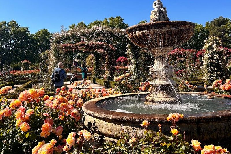 La roseraie, également appelée Rosaleda, fut créée en 1915 sous la direction du jardinier Cecilio Rodríguez. Elle abrite des centaines de variétés de roses, qui fleurissent au printemps et en été. Ses allées, ses pergolas et ses fontaines confèrent à cet espace une atmosphère romantique. C’est un lieu prisé pour la détente, la photographie ou l’admiration des couleurs. Sa situation centrale offre un accès facile depuis les entrées du parc.