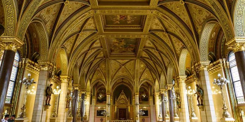 Imre Steindl s’inspira du Palais de Westminster à Londres et du Palais de la Hofburg à Vienne pour concevoir ces couloirs majestueux.