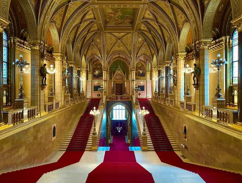 Explorez le bâtiment emblématique du Parlement hongrois de Budapest avec un audioguide. Découvrez la grandeur de la sall...