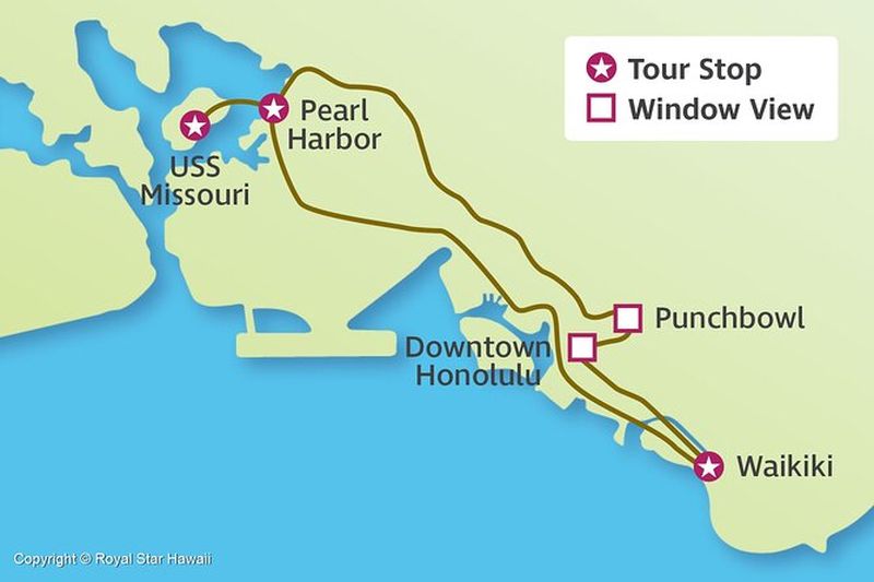 Vivez l'Arizona Memorial et le tour historique du centre-ville dans le confort et la sécurité d'un véhicule Deluxe Royal...
