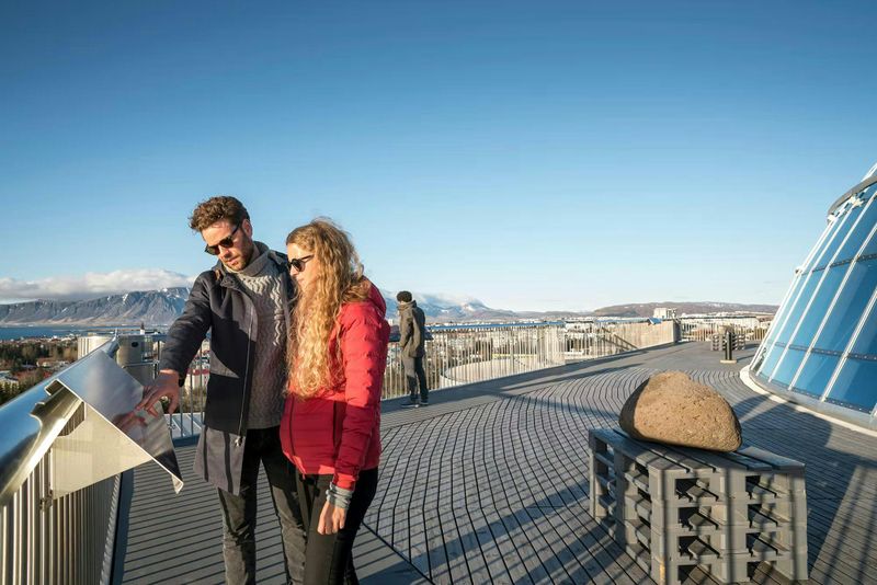 La plateforme d’observation panoramique a été inaugurée en 1991 en même temps que le bâtiment principal. Elle vous offre une vue à 360° sur Reykjavik, ses montagnes environnantes et l’immense océan Atlantique. Située à plus de 25 mètres de hauteur, elle s’étend autour du dôme vitré du Perlan. Ouverte toute l’année, cette terrasse vous permet d’observer le spectacle changeant de la lumière islandaise et les points de repère emblématiques de la ville.