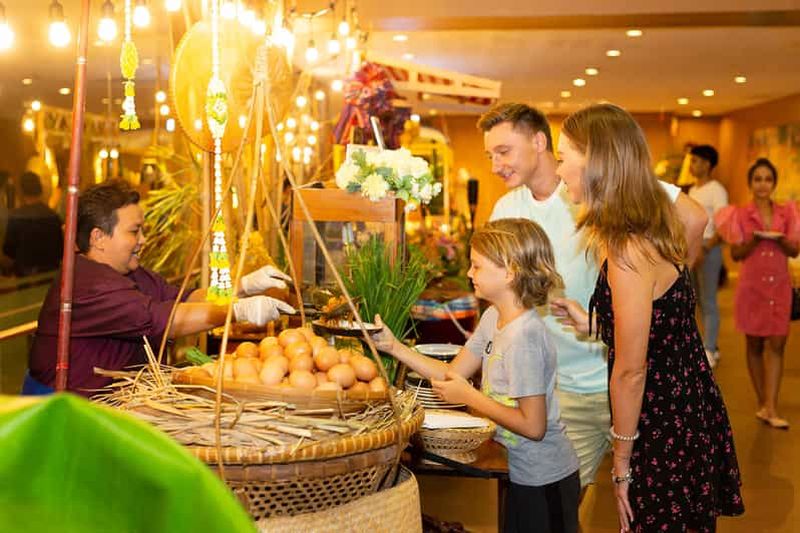 Découvrez le Siam Niramit Phuket avec les billets Silver Seat. Profitez de spectacles exceptionnels, d'un délicieux buffet thaïlandais-international et d'un transfert aisé vers l'hôtel.