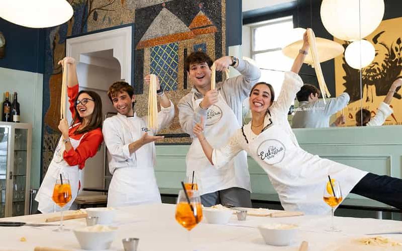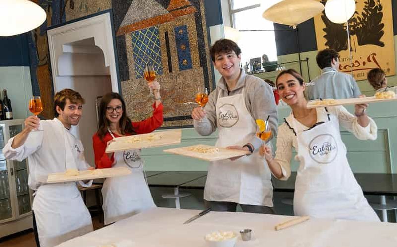 Préparez votre Spritz idéal et confectionnez vos propres fettuccine et maltagliati de A à Z. Savourez votre repas accomp...