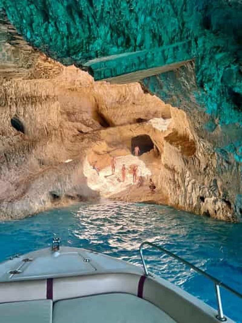 Ce forfait inclut le transport aller-retour vers le port, une sortie en bateau vers la plage du Naufrage, les grottes bleues et la plage blanche. Visite de l'olivier millénaire et d'une boutique biologique locale pour une dégustation de vin et de nourriture.