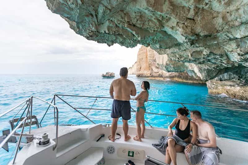 Le voyage comprend un arrêt à la plage du naufrage pour prendre des photos. Nous visitons les plus belles grottes bleues...