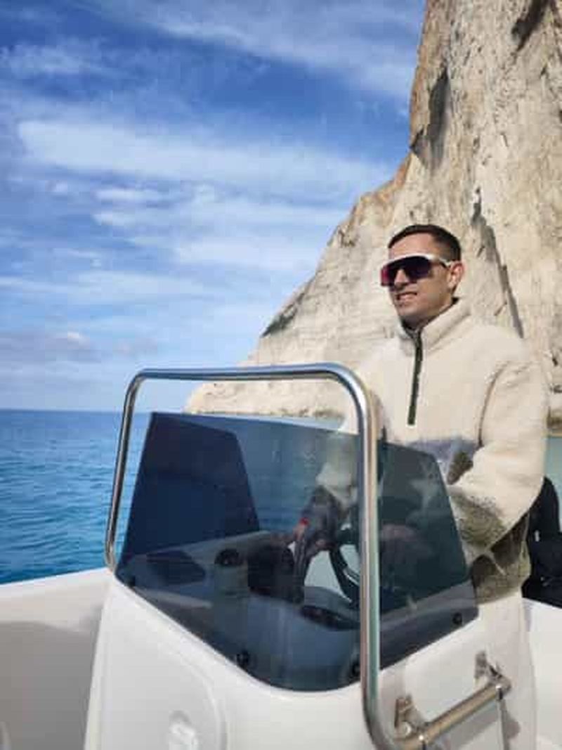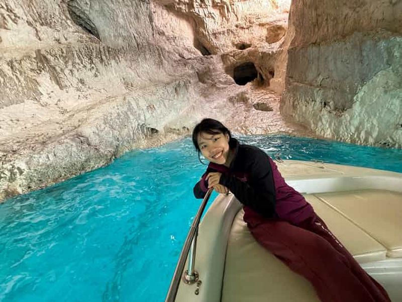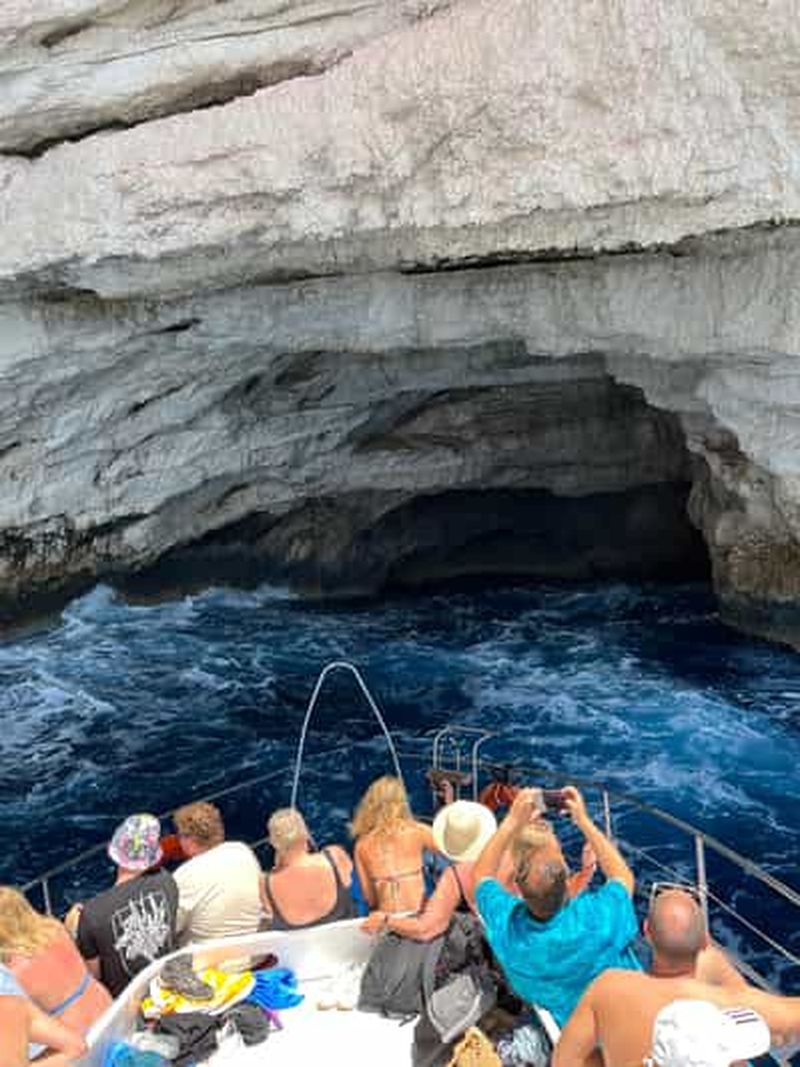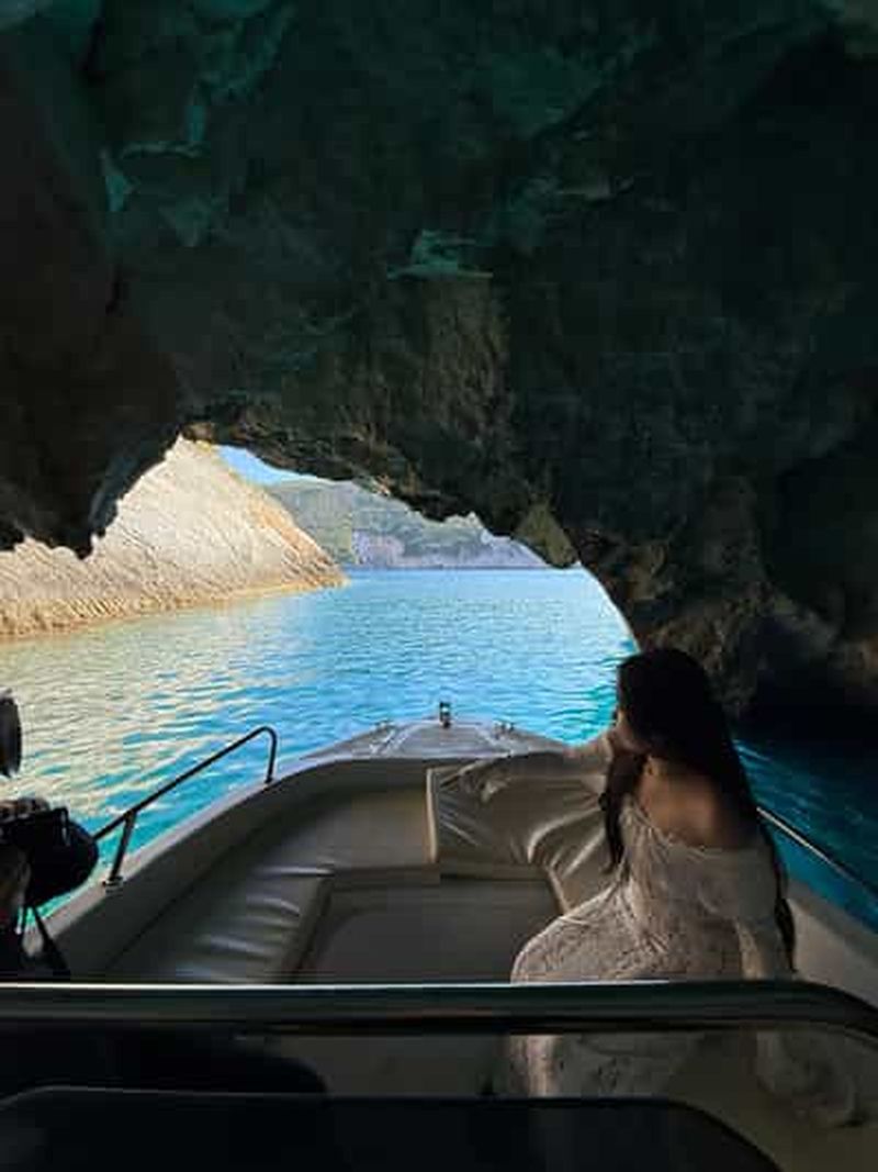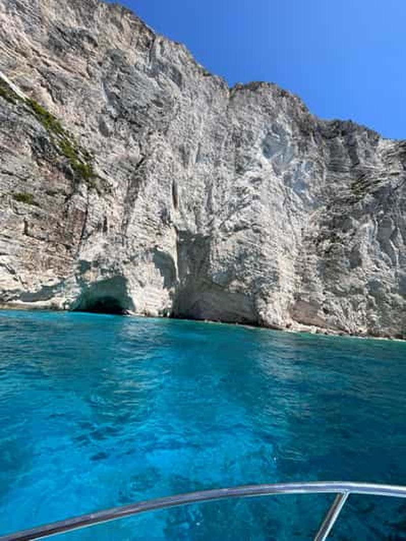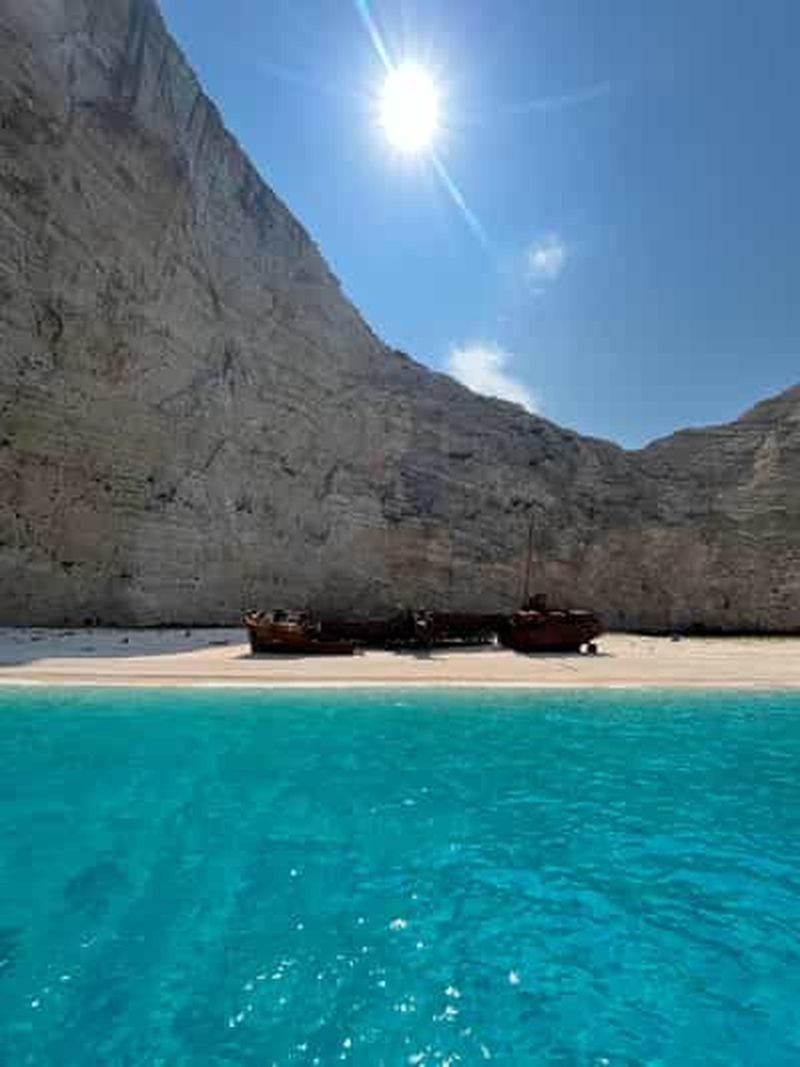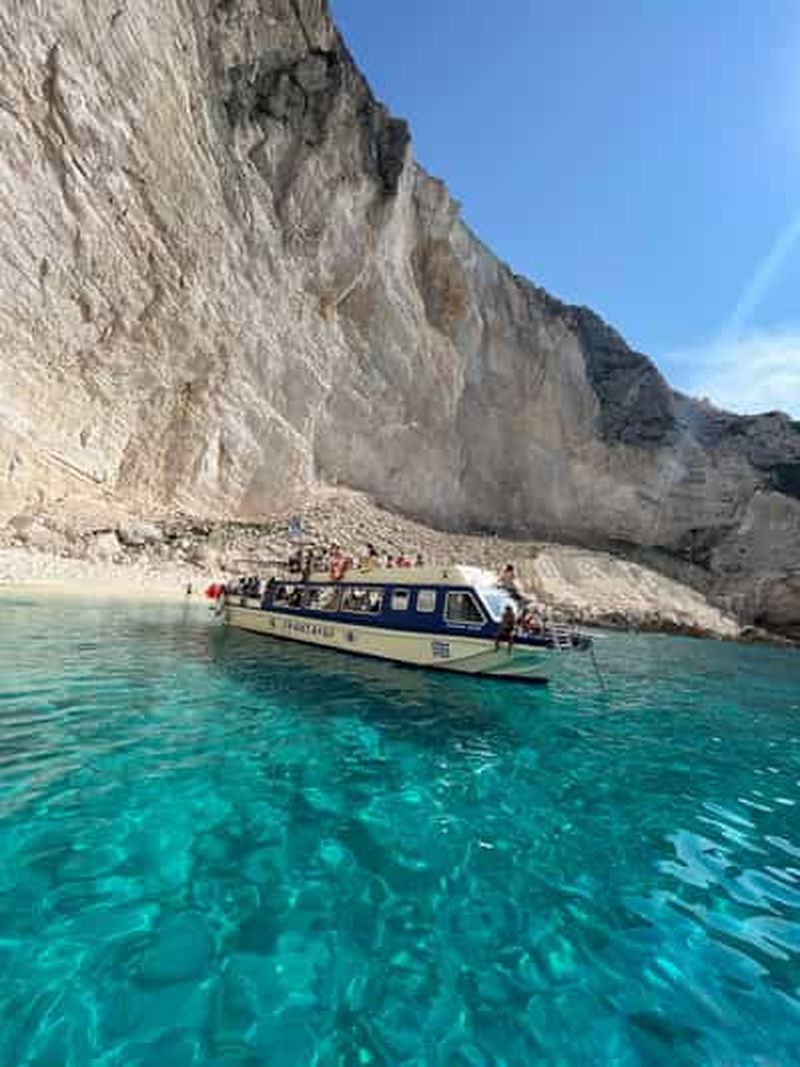 Porto Vromi : épave, grottes bleues et plage blanche en bateau