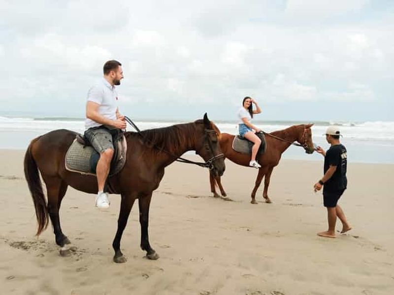 Découvrez une façon unique et mémorable d'explorer Bali à cheval à Seminyak, où le sable doré rencontre l'élégance tropi...