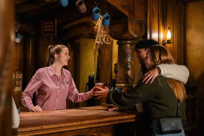 Au cœur du village, le Green Dragon Inn vous accueille dans une ambiance chaleureuse. Entièrement fonctionnel, ce pub propose des boissons brassées exclusivement pour le site, recréant fidèlement l’atmosphère festive de Tolkien. Vous pourrez y déguster des alcools locaux ou savourer une chope de bière artisanale.