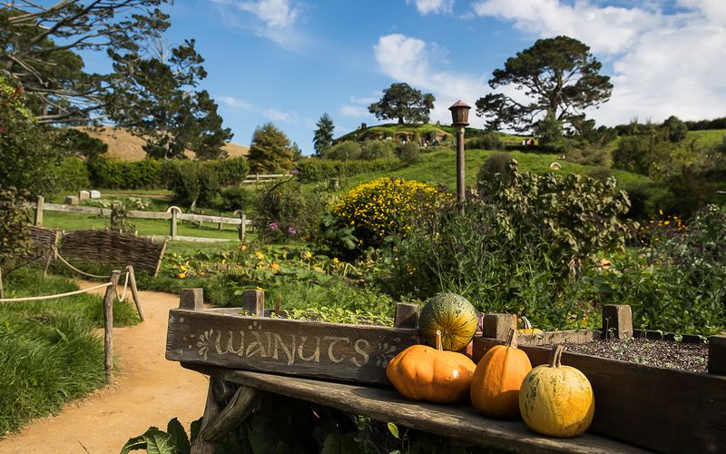 Des espaces verdoyants reproduisent la vie paisible des hobbits. Ils ont été aménagés selon les indications de Peter Jackson et de son équipe. Les potagers regorgent de légumes colorés. Les haies fleuries et les arbres fruitiers évoquent la prospérité de la Comté. Sillonnez les sentiers bordés de rosiers et de bancs en bois et profitez d’une promenade relaxante au cœur de ce charmant décor rural.