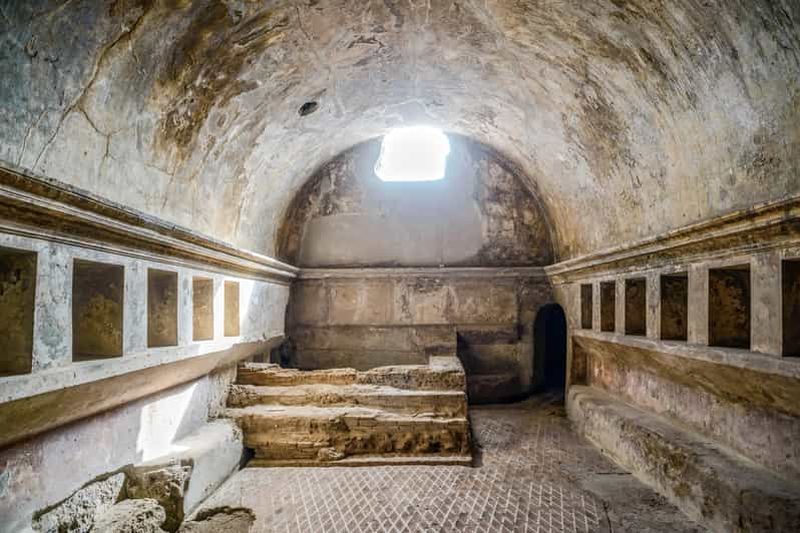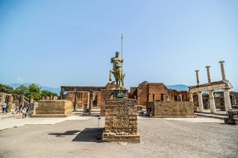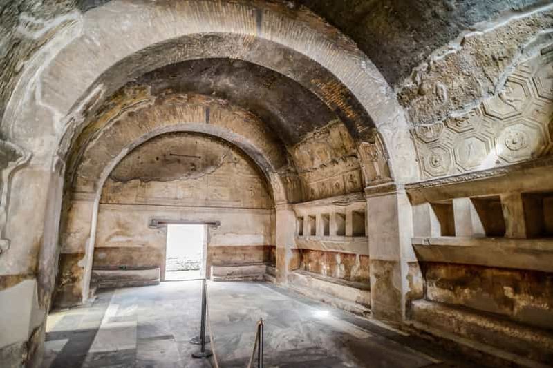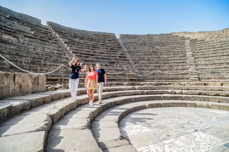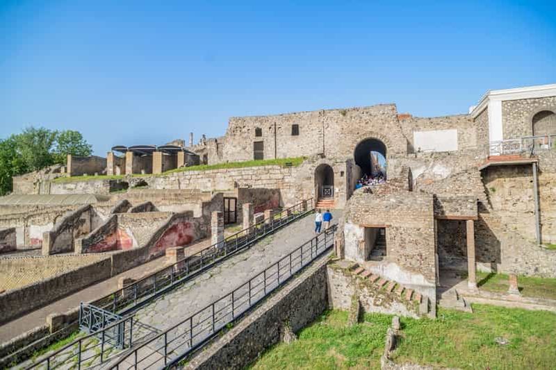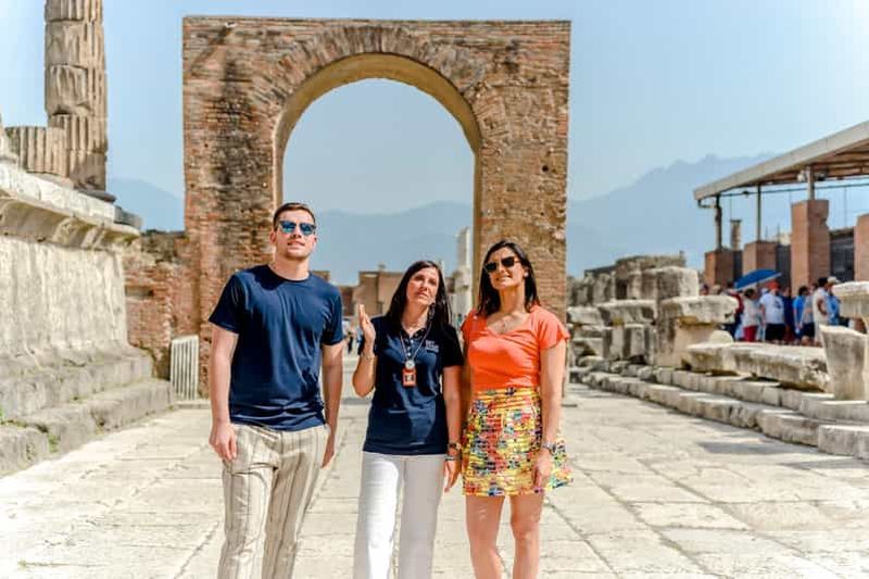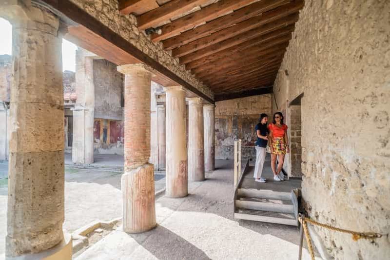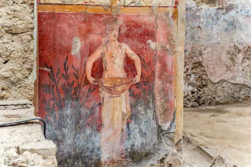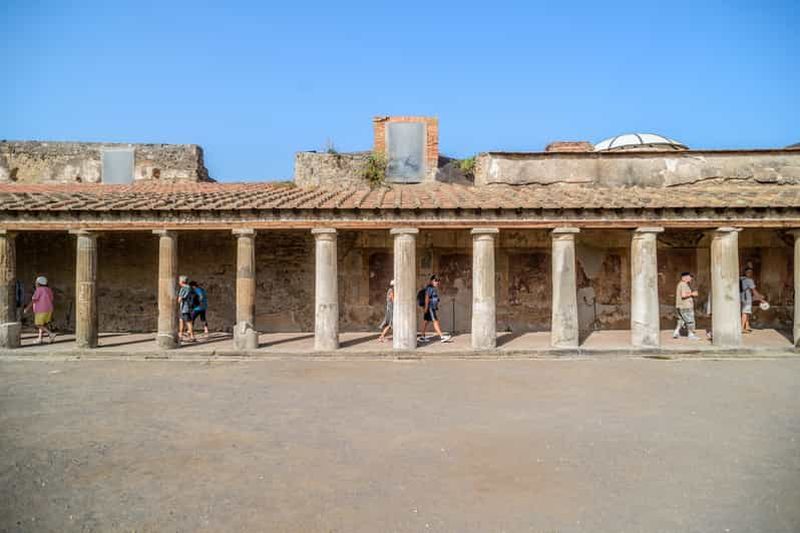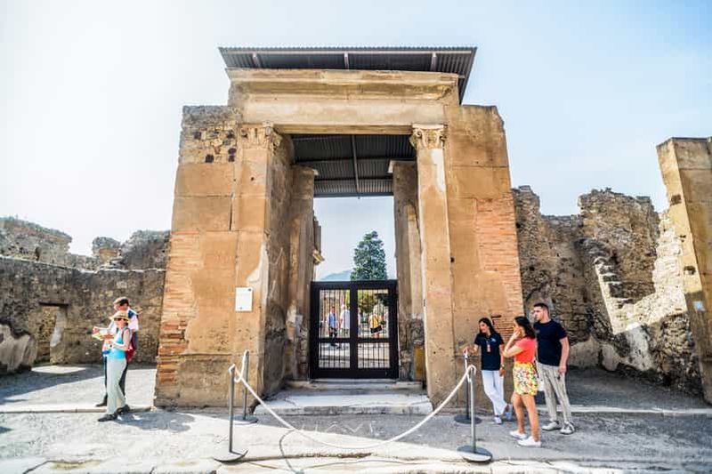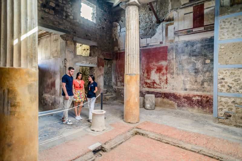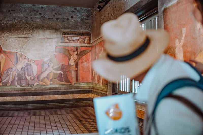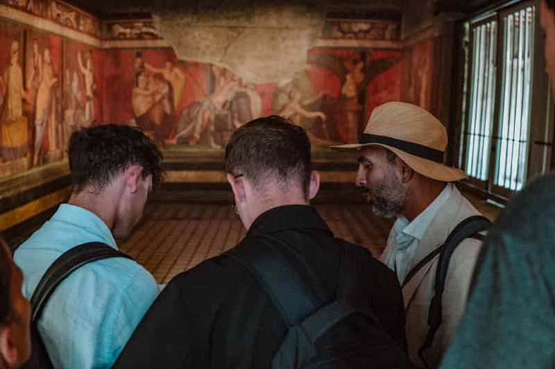 Sélectionnez cette option pour une visite guidée en groupe des ruines de Pompéi, y compris la Villa des Mystères, célèbre pour ses fresques bien conservées. Profitez d'une expérience intime avec un maximum de 20 personnes par guide. Les billets d'entrée supplémentaires sont inclus.
